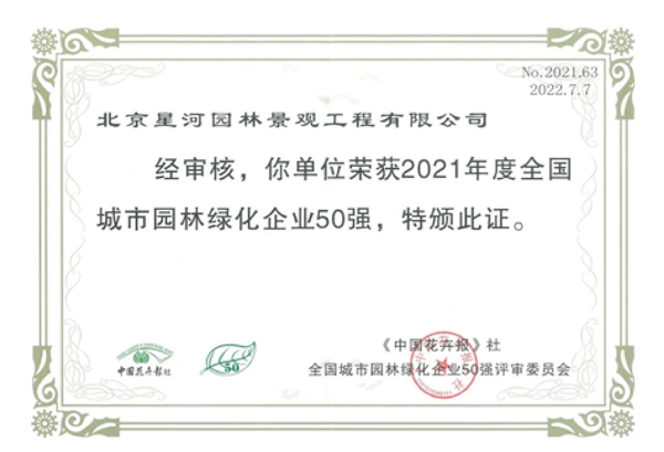 喜報 | 鐵漢星河蟬聯(lián)全國城市園林綠化企業(yè)50強